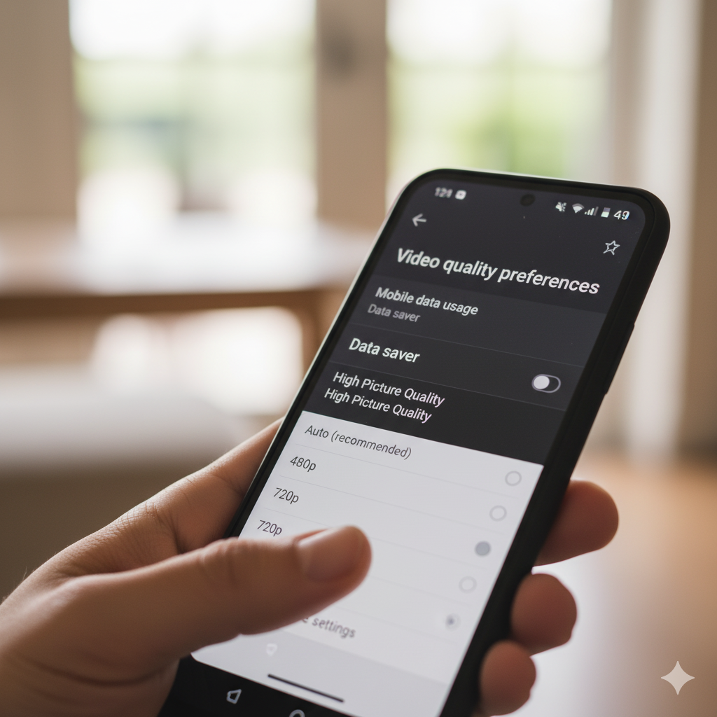 - 설정 → 비디오 화질 → 모바일 데이터 사용 시 → '데이터 절약' 활성화